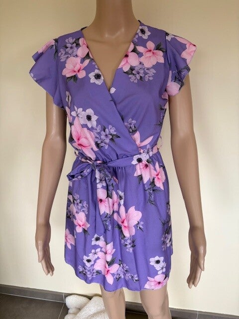 Paars kleed met bloemen