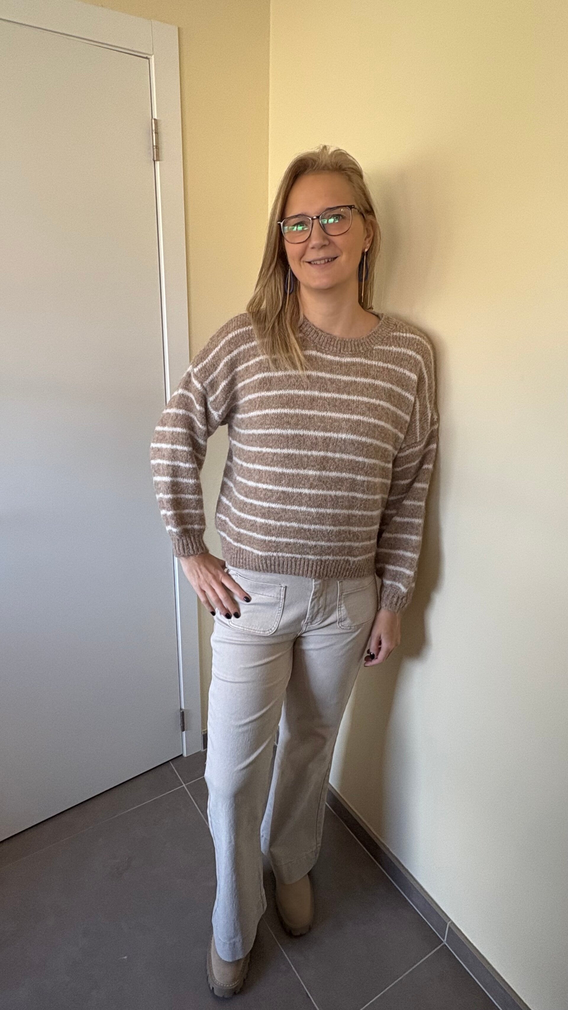 Gestreepte pull (beige/wit)