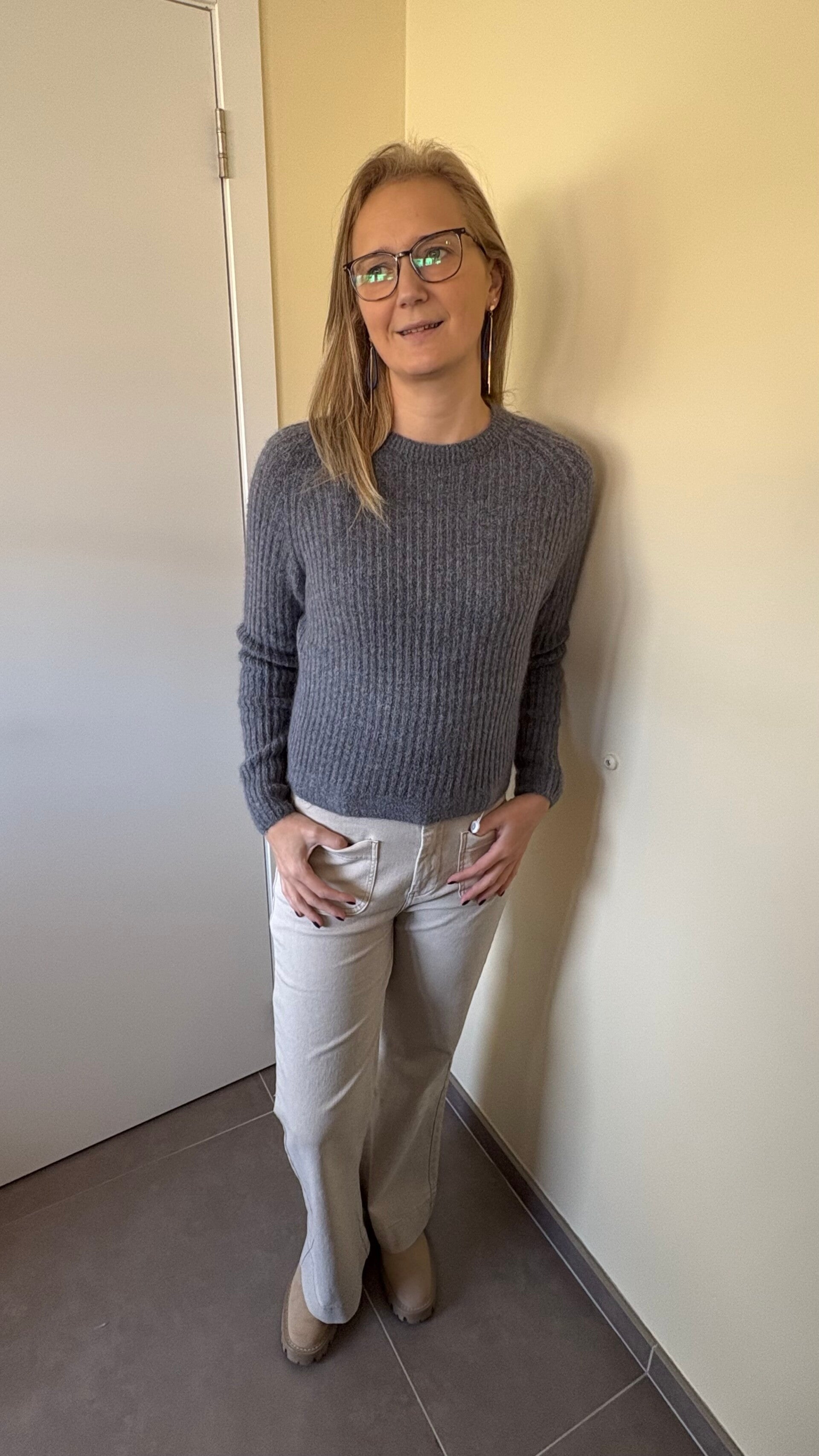 Gebreide grijze pull